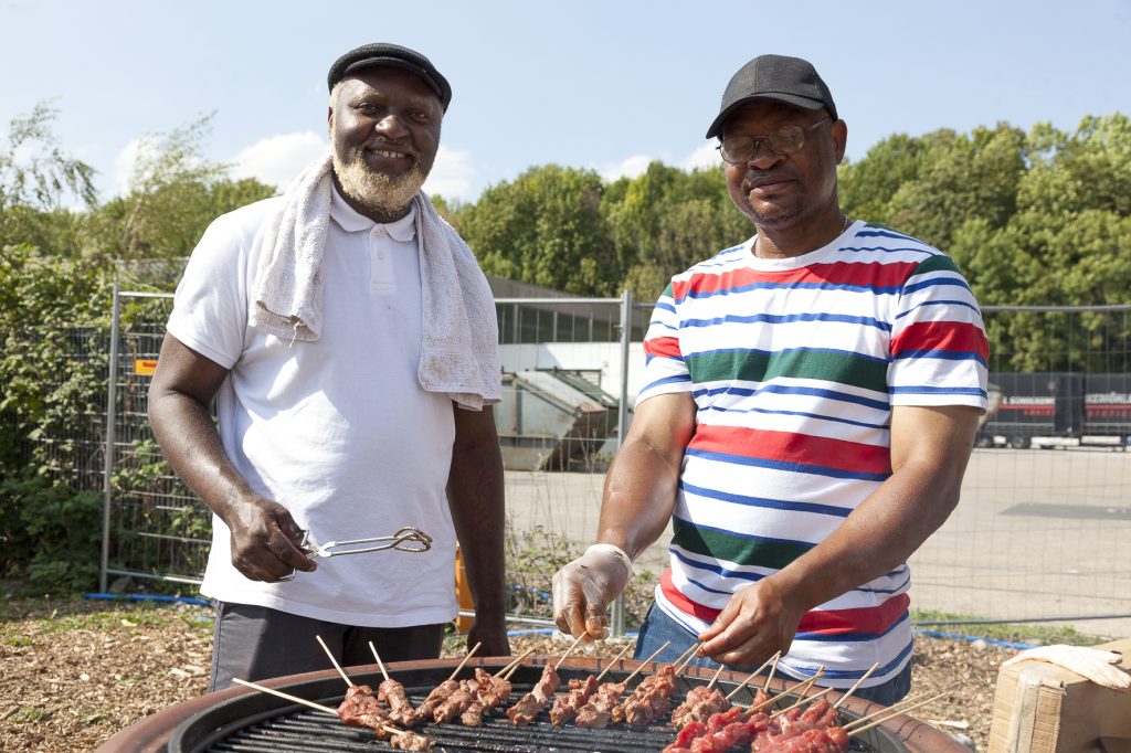 Nachdem wir gemeinsam über die Veranstaltungsfläche streifen und Impressionen aufsaugen lassen wir uns an einem Tisch auf der Utopiastadt Campus Raumstation nieder. Vor mir sitzt Niklas Brandau. Der Vierungvierzigjährige ist nicht nur Teil des Organisationsteams des „Afritopia – Global Food Lab“, sondern ebenso als Mitarbeiter der Utopiastadt gGmbH für die Utopiastadt Campus Raumstation zuständig. Wenn er nicht gerade Projekte über die Bühne bringt oder mit dem Bagger über die Raumstation fährt, engagiert sich der leidenschaftliche Utopist ehrenamtlich im Bereich Ernährung, urbane Lebensmittelproduktion und Bildungsarbeit in Utopiastadt. Heute ist er für den reibungslosen Ablauf der Veranstaltung zuständig.