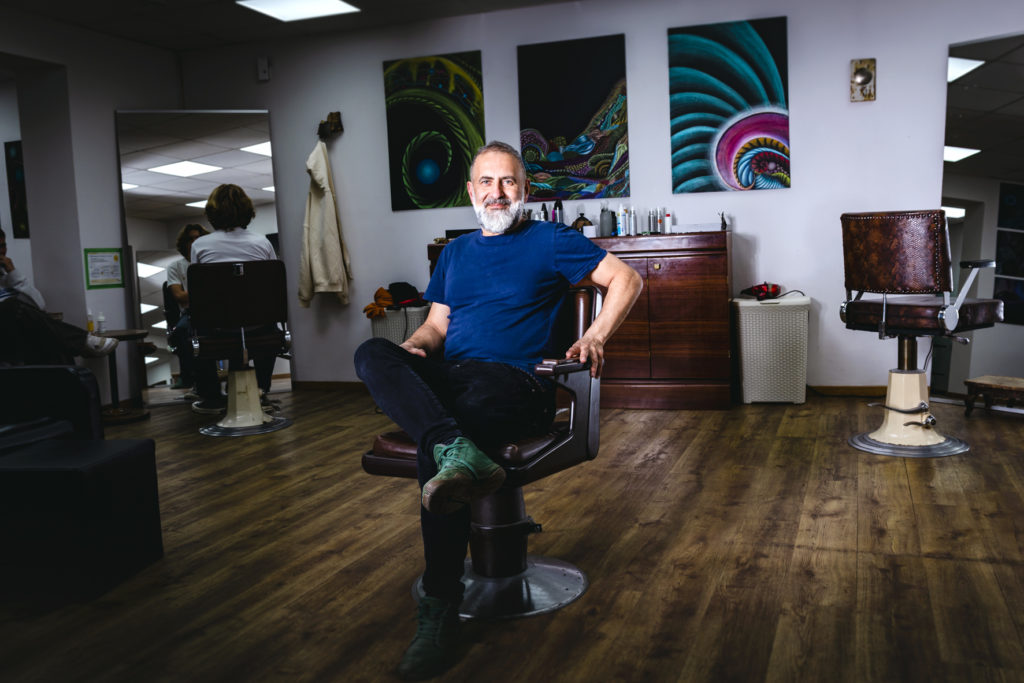 Alfonso Gravina ist Friseurmeister, Maler und Musiker. Gemeinsam mit seinem Sohn Giacomo eröffnete er 2017 den Friseursalon in der Friedrichstraße 10 und möchte das Quartier seitdem nicht mehr missen. Als Sohn einer italienischen Gastarbeiter*innenfamilie zog er 1977 erstmals in die Nachbarschaft. Seither hat er das Quartier des Öfteren für ein paar Jahre verlassen – letztendlich führte ihn sein Weg aber immer wieder zurück.