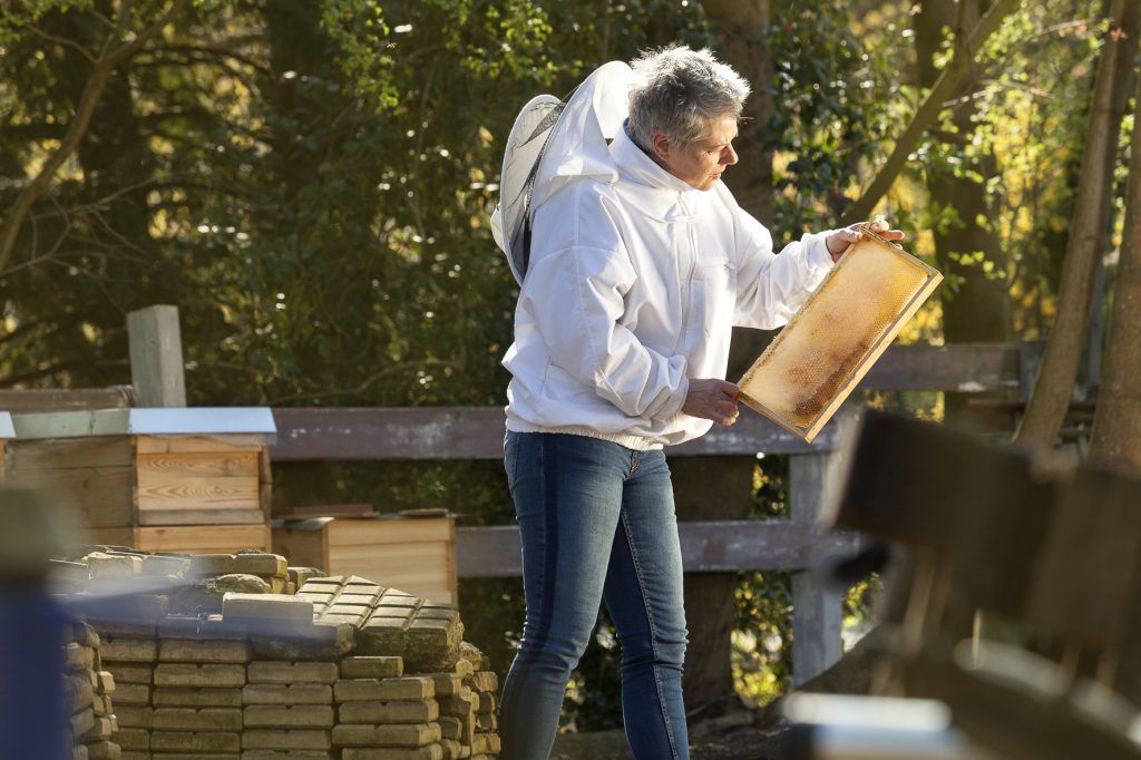 So zum Beispiel Candy Wiegratz (55), Utopist*in aus Leidenschaft. Die studierte Industriedesignerin hat sich ihren Traum erfüllt. Nachdem sie eine einjährige Ausbildung zur Imkerin an der Uni Bochum absolvierte, siedelte sie 2018 vier Bienenvölker auf den Außenflächen Utopiastadts an und schenkte ihnen ein neues Zuhause. Die Bienen bedienen sich fleißig an den Pflanzen im benachbarten UtopiastadtGarten und schaffen außerdem eine enormen Mehrwert für die umliegende Natur. Einige Jahre zuvor kam sie als Fahrradschrauber*in, durch ihre Intuition getrieben, das erste Mal zu Utopiastadt. Ihr gutes Gefühl ließ sie hier bleiben und seitdem entwickelt sie gemeinsam mit Utopist*innen weitere Projekte, bringt ihre Expertise in die Umsetzung ein und kümmert sich um ihre Bienen. In Zukunft möchte sie den geernteten Honig gegen Spende abgeben und eventuell Workshops anbieten, um weitere Wuppertaler*innen von der Leidenschaft zur so wichtigen Biene zu überzeugen. Candy ist außerdem im benachbarten UtopiastadtGarten aktiv. Ein Urban-Gardening-Projekt in dem sich rund 20 aktive Utopist*innen ihren Traum vom eigenen Garten gemeinsam ermöglichen. Die Ernte reicht zwar nicht zur Versorgung, aber der Garten wird auch eher als Ort des Lernens und Lehrens angesehen. Was angepflanzt wird, wird im Kollektiv entschieden. Wenn alle Pflanzen gegossen und Wege gepflastert wurden treffen sich die Gärtner*innen gerne in einer geselligen Runde, unter der alten Kastanie neben dem kleinen Naturteich im Garten, so Niklas Brandau. Hier wird über das Leben, die Arbeit und die Utopie geplaudert.