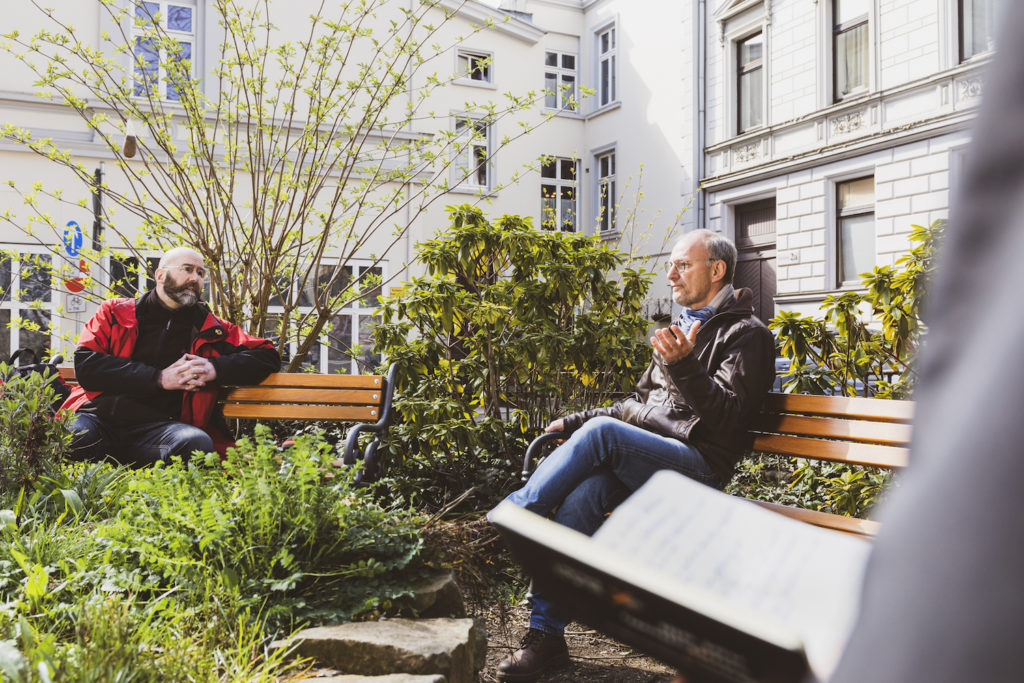 Holger Kreft ist der ehemalige Vorsitzende des »Initiative Kreuzkirche e.V.«. Als ambitionierter Projektentwickler für Transformation im urbanen Raum wirkte er unter anderen bei der Etablierung des Lernorts Wuppertals mit und sitzt im Vorstand des »Freiwirtschaftlichen Jugendverband Deutschland e.V.«. Seine Leidenschaft widmet er der Konzeptionierung und Etablierung von diversen Möglichkeitsräumen in der Stadt. Andreas von Thienen ist der ehemalige Schatzmeister des »Initiative Kreuzkirche e.V.«. Er ist direkter Nachbar der Kirche und engagiert sich außerdem in der »Initiative gemeinschaftliches Wohnen in Wuppertal« und der Arbeitsgruppe »Mobile Mirke«. Er selbst hat sich zum Ziel gesetzt die Gegensätze, die das Quartier beherrschen, aufzuzeigen und durch bürgerschaftliches Engagement ein Teil zu dessen Auflösung beizutragen.