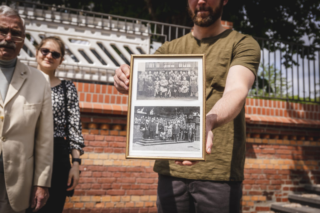 In der damaligen Zeit war es noch vollkommen normal, dass Arbeitsleben und Wohnen in einem verbundenen Nebeneinander existierten. Was heute als „Neue Urbane Produktion“ gepriesen und „neu entdeckt“ wird, war einst Alltag. Ekkehard hat allerdings nicht den Eindruck, dass diese Nähe entscheidend zu einem intensiveren Nachbarschaftsgefüge beigetragen hat. Letztendlich führte diese geringe räumliche Distanz aber zu einer Vermischung des Quartiers als Arbeits- und Wohnraum. Das zeigt nicht zuletzt eine der Fotografien die Ekkehard und Frederico mitbringen. Darauf ist die gesamte Belegschaft des Betriebs im Jahre 1950 anlässlich des 50-jährigen Firmenjubiläums auf der Treppenanlage vor dem Mirker Bahnhof versammelt. Der 12-jährige Ekkehard Brockhaus steht neben seinem Vater in der vordersten Reihe. Die Treppe stellte also schon damals einen bedeutenden Ort der Repräsentation dar. Ein zweites Foto, das die beiden mitbringen, zeigt eine Luftaufnahme von 1968 auf dem die Gebäude der Familie Brockhaus und Teile des Vorplatzes des Mirker Bahnhofs zu sehen sind. Neben der mächtigen Kastanie schmückten einst zwei weitere den Vorplatz. Außerdem ist die gespaltene Zuwegung zur Treppe deutlich sichtbar. Der damalige Glanz des Bahnhofs und der Treppenanlage nahm mit der Stilllegung der „Wuppertaler-Nordbahn“ 1991 jedoch rapide ab, bis sie letztendlich gar nicht mehr nutzbar war. Daran konnte auch die Übernahme des Mirker Bahnhofs durch die „Utopiastadt gGmbH“ nichts ändern. Erst die Eröffnung der Nordbahntrasse als Rad- und Fußweg und die Belebung des ehemaligen Bahnhofs im Sinne „Utopiastadts“ führte zu einer Attraktivitätssteigerung des Areals. Diese neuen Impulse mündeten letztendlich in den laufenden Sanierungsarbeiten der historischen Treppenanlage, die heute am 14. Mai 2022, anlässlich des Tages der Städtebauförderung, nun endgültig wieder eröffnet wird. Nach intensiven Sanierungsarbeiten wurden Teile der historischen Bausubstanz aufgearbeitet und mit modernen Elementen rekonstruiert.