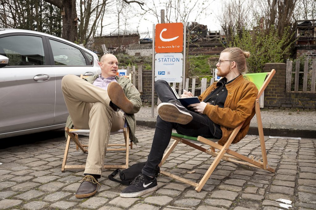 Wolf Sondermann und ich, Max-Mosche Kohlstadt, treffen uns mit Henrik Hallmann, Vertreter von Cambio Carsharing Wuppertal. Gemeinsam nehmen wir Platz auf dem Parkplatz. Über ganz Deutschland vernetzt, etabliert sich das bewährte Carsharing Modell auch nach und nach in Wuppertal. Wuppertaler*innen die durch ihren Job nicht auf ein Auto angewiesen sind, ab und zu aber den Luxus nutzen wollen, kriegen hierdurch die Möglichkeit stundenweise und kostengünstig ein Auto zu leihen, falls es mal von Nöten ist. Dadurch ist es nicht verwunderlich, dass ein Carsharing Auto durchschnittlich ca. 11 Autos von den Wuppertaler Straßen holt und somit Platz schafft. Platz für öffentlichen Raum und dessen nachhaltige und gesamtgesellschaftliche Nutzung.