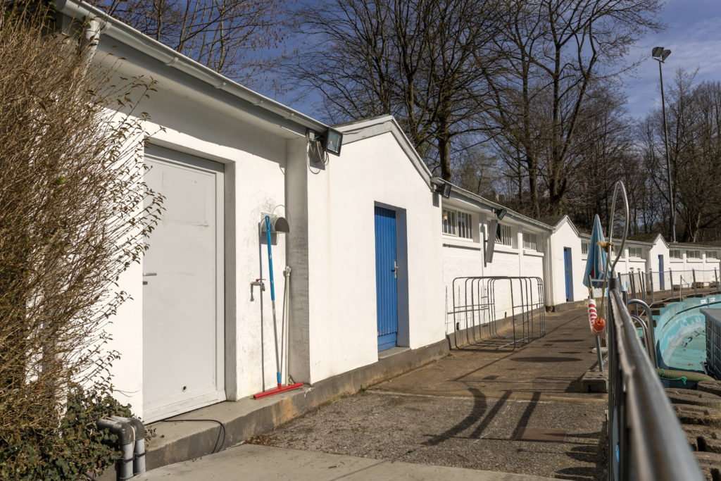 […] Seitdem der Förderverein den Betrieb des Freibads von der Stadt Wuppertal übernahm, wandelte sich der Ort grundlegend. Nicht nur verlor das Wasserbecken erheblich an Ausmaß und wurde zu einem Becken im Becken, auch die umliegenden Flächen, die grasigen Hänge und alten Baumbestände wurden in ein neues Licht gerückt. Bei der Übergabe des Freibads zog die Kultur mit ein und seitdem wird gemeinsam gebastelt, gekocht, gesungen, gebaut und gestaunt. An einem Tag wird das weitläufige Areal rund um den Beckenrand durch Licht- und Soundinstallationen in surreale Realitäten getaucht, während am nächsten Tag Festivalbesucher*innen sich auf den Hängen niederlassen und urbane Gärten anlegen. Ob Kino, Lesungen, Konzerte, Spiele, Koch- und Gartenaktionen – seitdem der Förderverein das historische Freibad in seine Obhut nahm, ist es ein vielfältiger Ort geworden [Quartier:Mirke]. […]