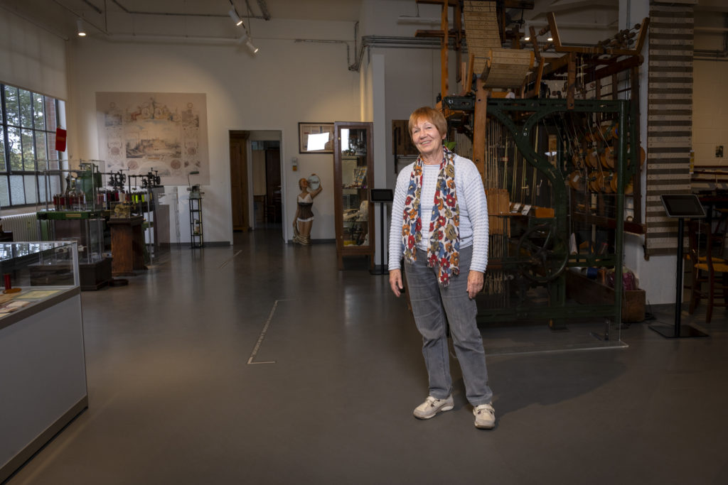 Irmlind Pesch ist gebürtige Braunschweigerin, doch bereits vor geraumer Zeit landete sie aus beruflichen Gründen im beschaulichen Wuppertal und arbeitete 43 Jahre ihres Lebens als Lehrerin an der Friedrich-Bayer-Realschule. Sie ist ehrenamtliches Gründungsmitglied und langjährige erste Vorsitzende des „Fördervereins Bandwebermuseum“ und hat sich im Zuge dessen über die Jahrzehnte unglaublich detailliertes Wissen über die verschiedenen Arbeitsabläufe angeeignet, das sie gerne teilt.