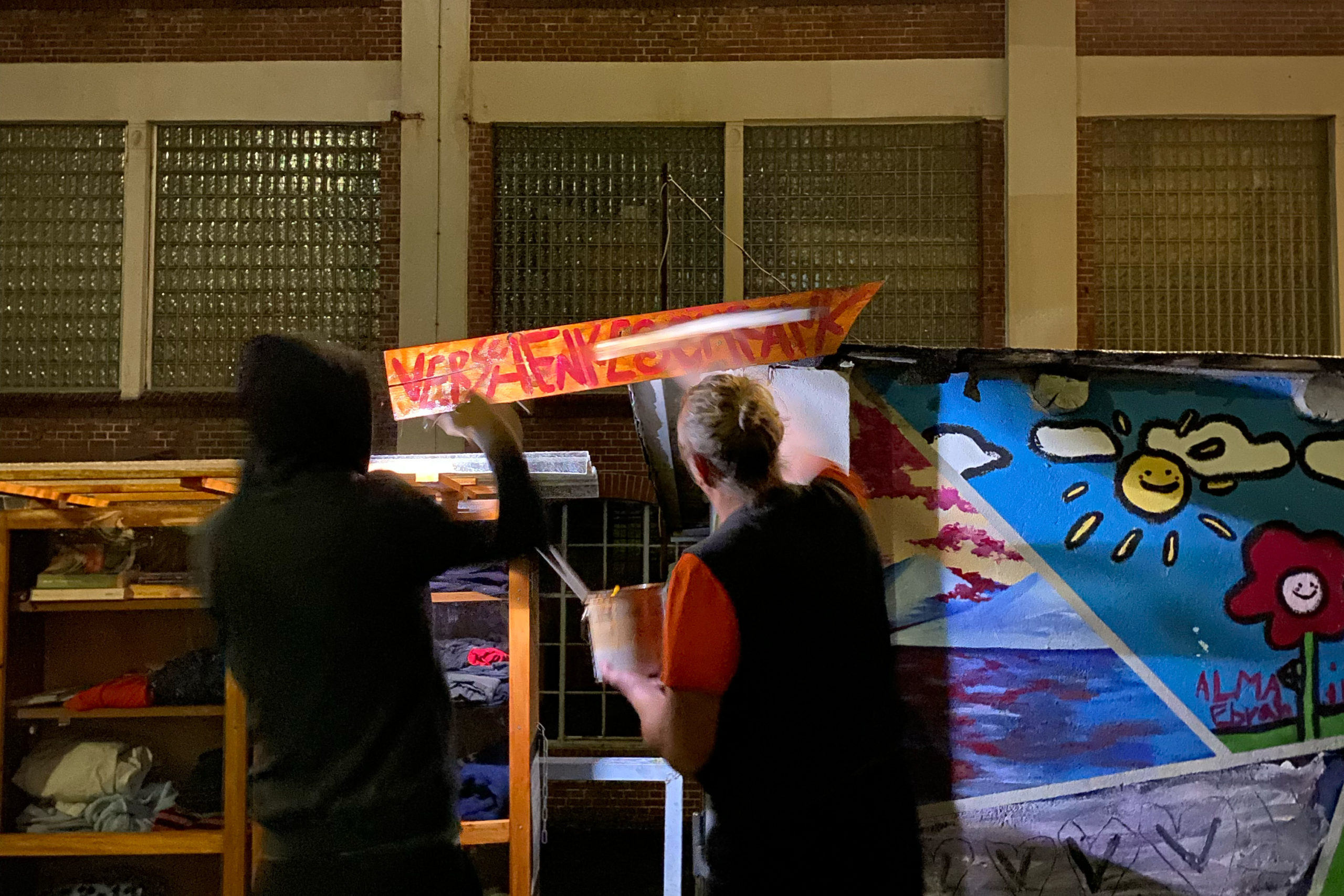 Die Tauschwägen sind Ergebnis der Arbeit des Kollektivs „Solidarischer Aufbau Wuppertal“. Eine Gruppe von verschiedenen autonomen Einzelpersonen, die sich zum Teil bereits aus anderen politischen Gruppen kennen. Sie alle kommen aus Wuppertal bzw. der näheren Umgebung und wissen um die alltäglichen Probleme der Nachbar*innenschaft und die Leben der Wuppertaler*innen. Doch nicht nur der gemeinsame Lebensort verbindet sie, sondern auch ein Gedanke, der Realität werden will: Die Idee einer solidarischen Gemeinschaft, die sich selbst verwaltet und Gegenseitigkeit und Unterstützung im alltäglichen Leben zentriert. Im Zuge ihres Aktivismus bevorzugen sie es lieber anonym zu bleiben, was wir gut verstehen – schließlich erfahren Angehörige linker Gruppen seit Jahren immer mehr Repression. Das Konzept der Gruppe ist nicht aus dem luftleeren Raum gegriffen. Der Name, die Idee, wie auch die Umsetzung ist von Genoss*innen der Osnabrücker Gruppe „Solidarischer Aufbau“ inspiriert und wird von diesen ausdrücklich unterstützt. Die ortsansässige Gruppe in Osnabrück hat dort nicht nur Tauschwägen installiert, sondern für beinahe ein Dutzend Obdachlose rollbare Schlafhütten gebaut. Doch die Genoss*innen aus Osnabrück sind in letzter Zeit immer akuter von Räumungen bedroht – ein wiederkehrendes Muster, wie sich zeigt.