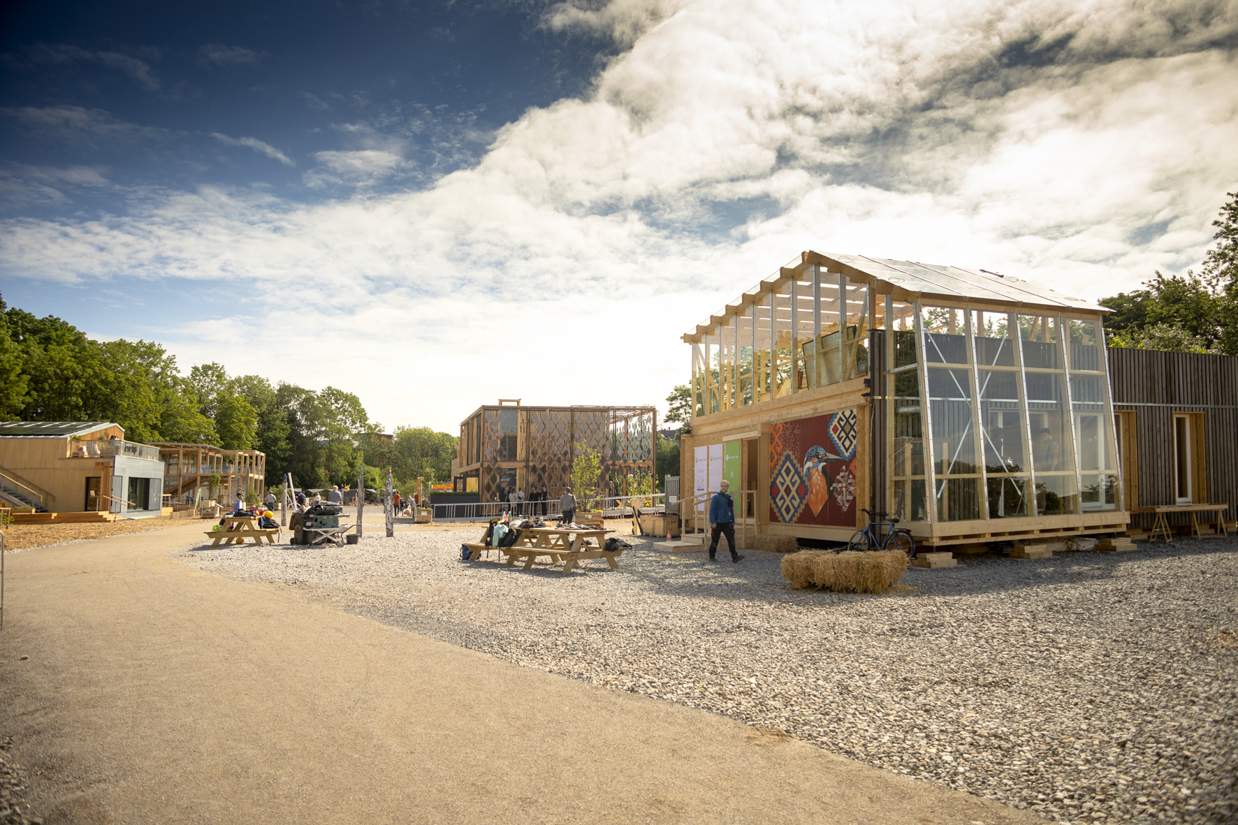 Nach drei Wochen ist es jetzt endlich so weit – der Solar Decathlon 21/22 öffnet seine Tore. Drei Wochen, in denen sich der Utopiastadt Campus entlang der Nordbahntrasse wohl nicht intensiver hätte wandeln können. Wo einst Hundewiese, Utopiastadt Campus Raumstation, Festivalfläche, Schrottplatz, Speditionshalle und braches Industriegelände war, ist nun ein temporäres Messegelände mit sechzehn innovativen Häusern entstanden. Wir durften einige Stunden vor offiziellem Beginn der Veranstaltung bereits über das Gelände schlendern und haben für euch ein paar bildliche Impressionen gesammelt.