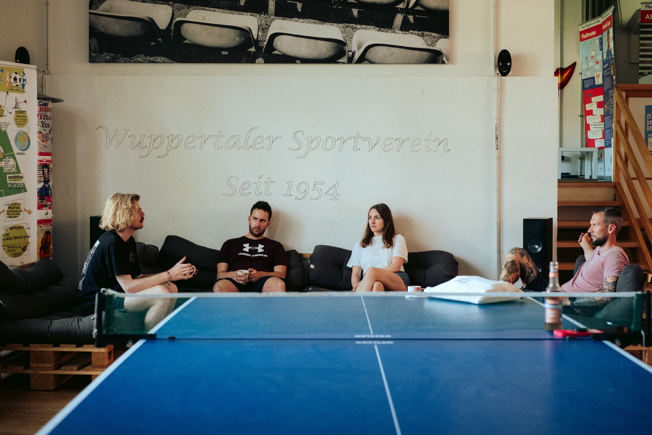 Für die einen ist Fußball bloß ein einfacher Zeitvertreib, für andere ist es ein integraler Bestandteil ihres Lebens. Während viele Fans Fußball als reines Hobby betrachten, ist es für andere eine Leidenschaft, die ihre Identität prägt – In diesem Spannungsfeld befinden sich auch Ultras und Hooligans. Wie in jeder sozialen Gruppe werden dabei innerhalb der Fanszenen gesellschaftliche Probleme deutlich. Doch statt diesen Problemen präventiv und auf Augenhöhe zu begegnen, wird in den Medien häufig über die Szene geschimpft und spekuliert. Das Fanprojekt Wuppertal geht seit fast 20 Jahren einen anderen Weg. Seit 2018 ist es nun im Quartier beheimatet und fungiert als Anlaufstelle für junge Fans, Ultras und Hooligans der WSV Fangemeinde, die von den Mitarbeiter*innen des Projekts in ihrer Freizeit als auch in schwierigen Lebenslagen und an Spieltagen begleitet werden. Wir haben uns mit Lara Schmitz, Nico Klinkert und Lukas Koch in den Räumlichkeiten des Fanprojekts Wuppertal getroffen, um mehr über ihre Arbeit zu erfahren.