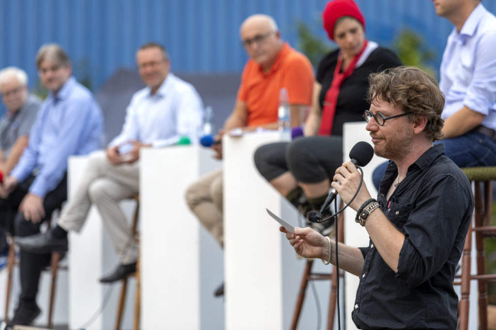 100 Interessierte versammelten sich mit gebührendem Abstand an diesem lauen Sommerabend vor dem Zirkuszelt auf dem Utopiastadt Campus. Der Innenraum konnte nicht genutzt werden, da die Bauabnahme für die ungewöhnliche Location nicht mehr zeitig eingeholt werden konnte. Trotz alledem begrüßte Moderator David J. Becher die Gäst*innen passend zur Location in dem Outfit eines Zirkusdirektors. David J. Becher und Inge Grau, Organisationsmitglied des Forum:Mirke, führten danach in den thematischen Ablauf des Abends ein. Anschließend wurden die Kandidat*innen nach einer Losung aufgerufen und zum Podium gebeten. Der Reihe nach betraten Marcel Hafke (FDP), Mira Lehner (Die PARTEI), Panagiotis Paschalis (Parteilos), Uwe Schneidewind (Bündnis 90/Die Grünen & CDU), Henrik Dahlmann (WfW), Bernhard Sander (die Linke) und Andreas Mucke (SPD) die Bühne.