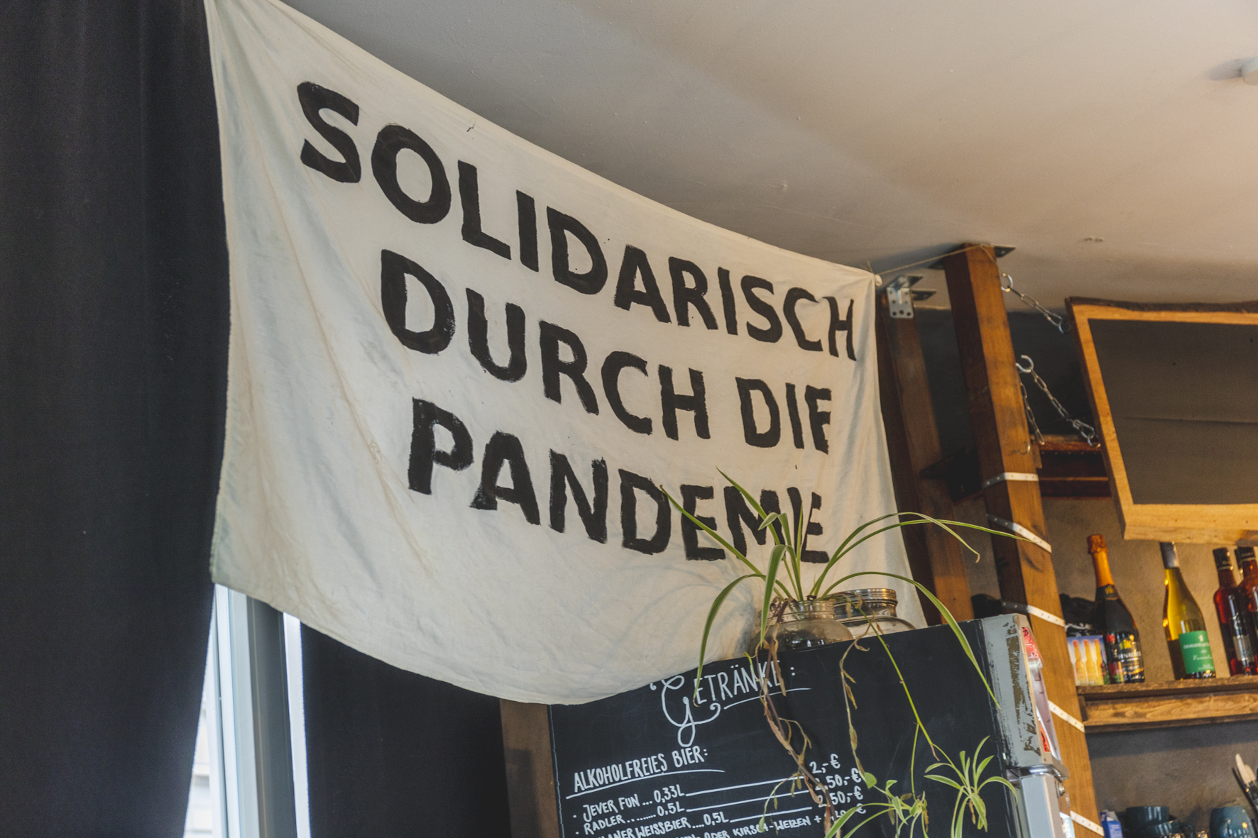 Das zeigt sich z.B. in der Art und Weise des Wirtschaftens. Die Schmitz‘ Katze hält sich durch die Einnahmen des Getränkeverkaufs, vereinzelte Spenden und beständige Fördermitgliedschaften am Leben. Alle Fördermitglieder erhalten im Gegenzug zu ihren monatlichen Spenden einen Rabatt von 50ct auf alle Getränke – da schmeckt das Hansa noch besser. Des Weiteren verzichten alle Thekenmitarbeiter*innen auf ihre Entlohnung und entgegen der gängigen Maxime, den größtmöglichen Profit zu generieren, spendet das Kollektiv alle Gewinne, die nicht wieder in den Laden reinvestiert werden müssen, an ähnliche Projekte im Aufbau oder andere Organisationen. Wohin die Spenden konkret fließen, wird gemeinsam entschieden. Das in der Gastronomie übliche Trinkgeld wird in einer Aufschubkasse gesammelt, aus der sich Gäst*innen mit geringen finanziellen Mitteln ihre Getränke finanzieren können. Darüber hinaus können Gäst*innen aber auch ihre eigenen Getränke mitbringen oder sich im Raum aufhalten, ohne zum Konsum gezwungen zu werden. Inzwischen hat das Kollektiv so alle Kredite für die Renovierung und Ausschankgenehmigung abzahlen können – das Konzept geht also auf. Hätte das Fortbestehen der Schmitz‘ Katze lediglich auf dem Rücken einer einzelnen Person gelastet, hätte eine Neueröffnung im Sommer 2020 und die fortlaufende Existenz wohl einem Kamikazeakt geglichen. Hier zeigt sich, dass die Art und Weise der Organisation maßgebliche Auswirkungen auf die realen Möglichkeiten er Strukturen hat.