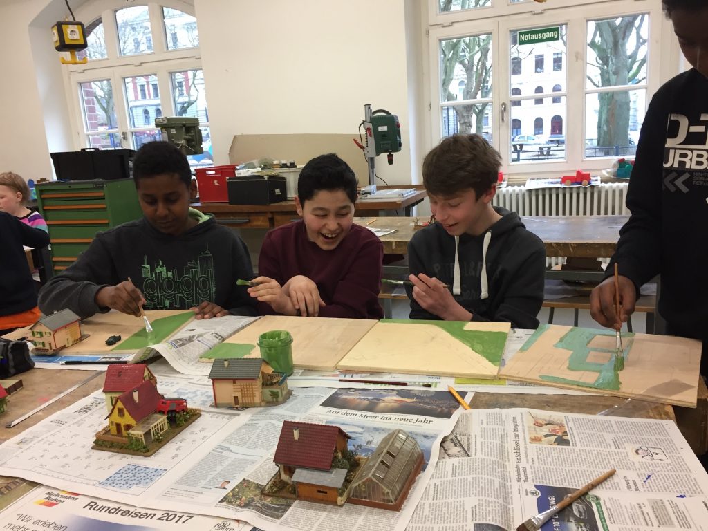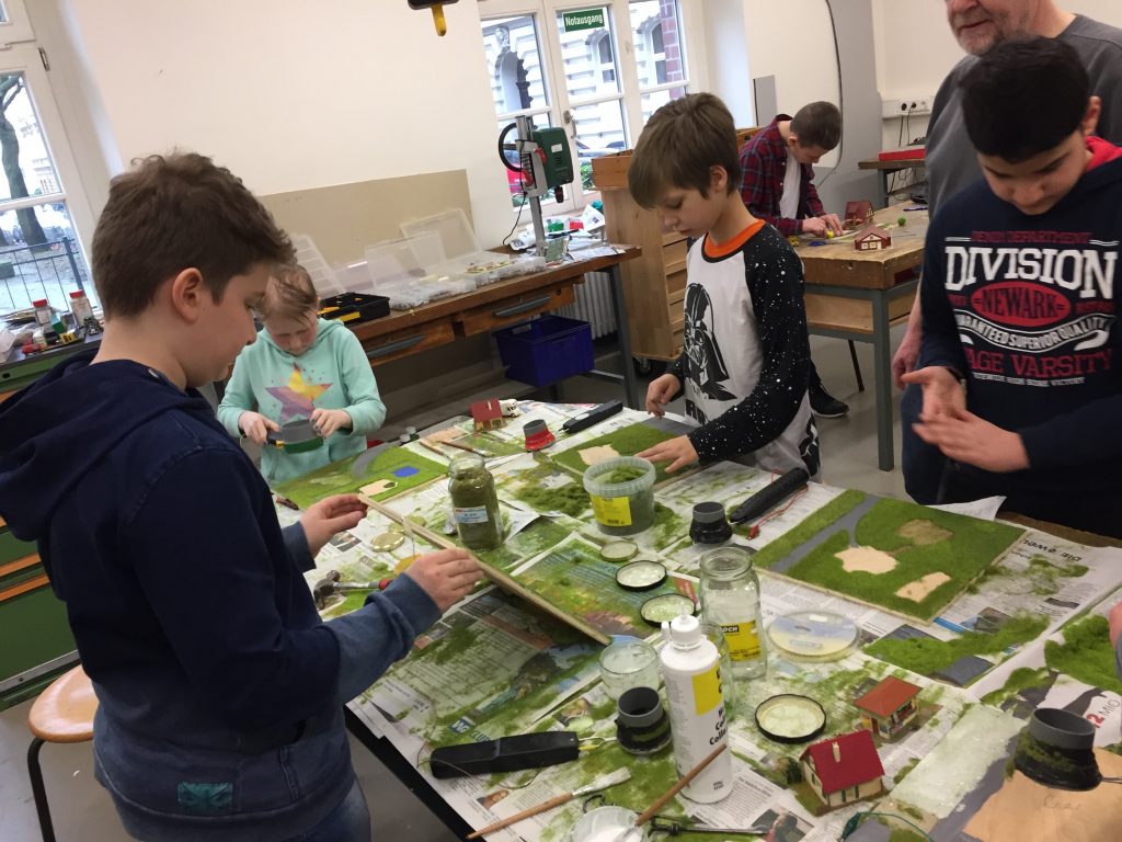»Uns ist der soziale Charakter in der Verbindung des Baus einer Modellbahnanlage, und der parallel dazu betriebenen Modelltraumlandschulwerkstatt wichtig!« so Weikamp und Schreiber.