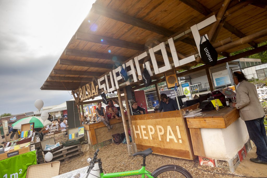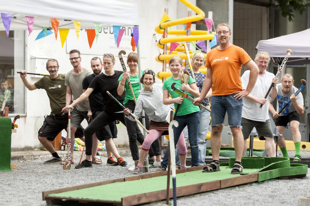 Pünktlich am ersten Juniwochenende, eröffnete außerdem das berühmt berüchtigte „Supagolf“ erneut ihre Bahnen. Viele der Besucher*innen probierten sich mit dem aussortierten Hockeyschläger an den etwas ausgefalleneren Bahnen aus. Über Stock und über Stein auf dem Utopiastadt Campus, durch die Schwebebahn entlang am Miniaturparkplatz über die Picknickdecke ins Loch auf dem Vorplatz der Hebebühne. Ein Event, dass den Designmarkt enorm bereichert.