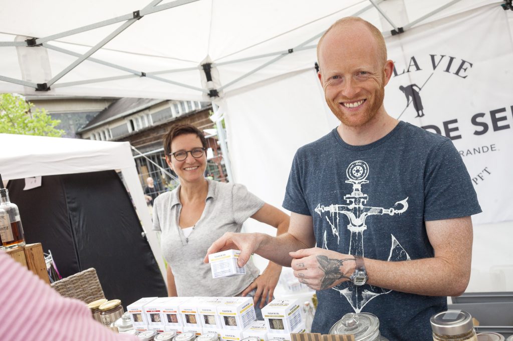 Echte Wohlfühlatmosphäre kam am vergangenen Wochenende auf. Am Sonntag sowie am Montag präsentierten über 45 Aussteller*innen ihre nützlichen Dingen. Die angebotene Palette an innovativen und handgemachten Produkten enthielt somit für Jede*n das gewisse Etwas. Zwischen eigens designter Mode für Groß und Klein, handgemachtem alltagsfähigem Schmuck, liebevoll gefertigten und designten Illustrationen für die eigenen vier Wände und wahrhaftigen Leckereien in Form von Salz, Likören und Schokolade, blieb allerlei Raum für freundschaftliche Begegnungen auf dem Wuppertaler Sonnendeck. Der Bahnsteig des ehemaligen Bahnhof Mirke, heute Außengastronomie des Café Hutmachers, blieb die meiste Zeit über voll besetzt. Menschen lachten, erfreuten sich ihrer Getränke, dem wunderbaren Wetter, neuer Begegnungen und ließen sich von der Musik der örtlichen Dj*anes berieseln. Mehr Sommer geht ja wohl nicht – außer mit weniger Wolken!