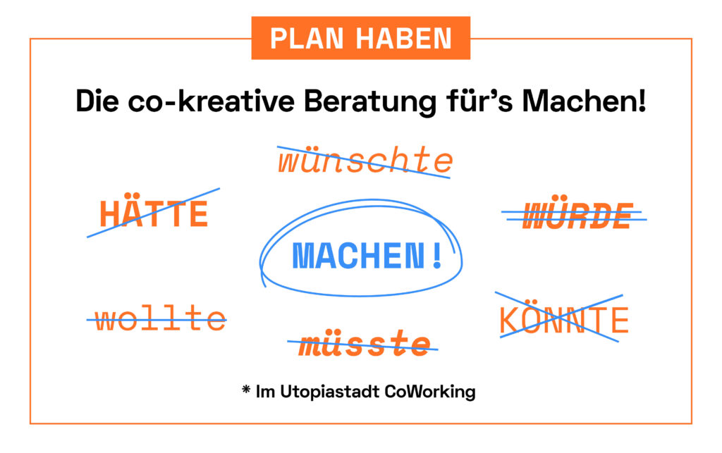 PLAN HABEN öffnet in Utopiastadt einen Raum, wo Know-How für’s Machen geteilt wird. Wo Menschen wie Du voneinander lernen und in Ihrem Tun einen Schritt weiterkommen! Nach einer Erprobungsphase im virtuellen Raum haben wir uns eine Frischzellenkur verpasst und starten in diesem Jahr endlich wieder in die Realität!