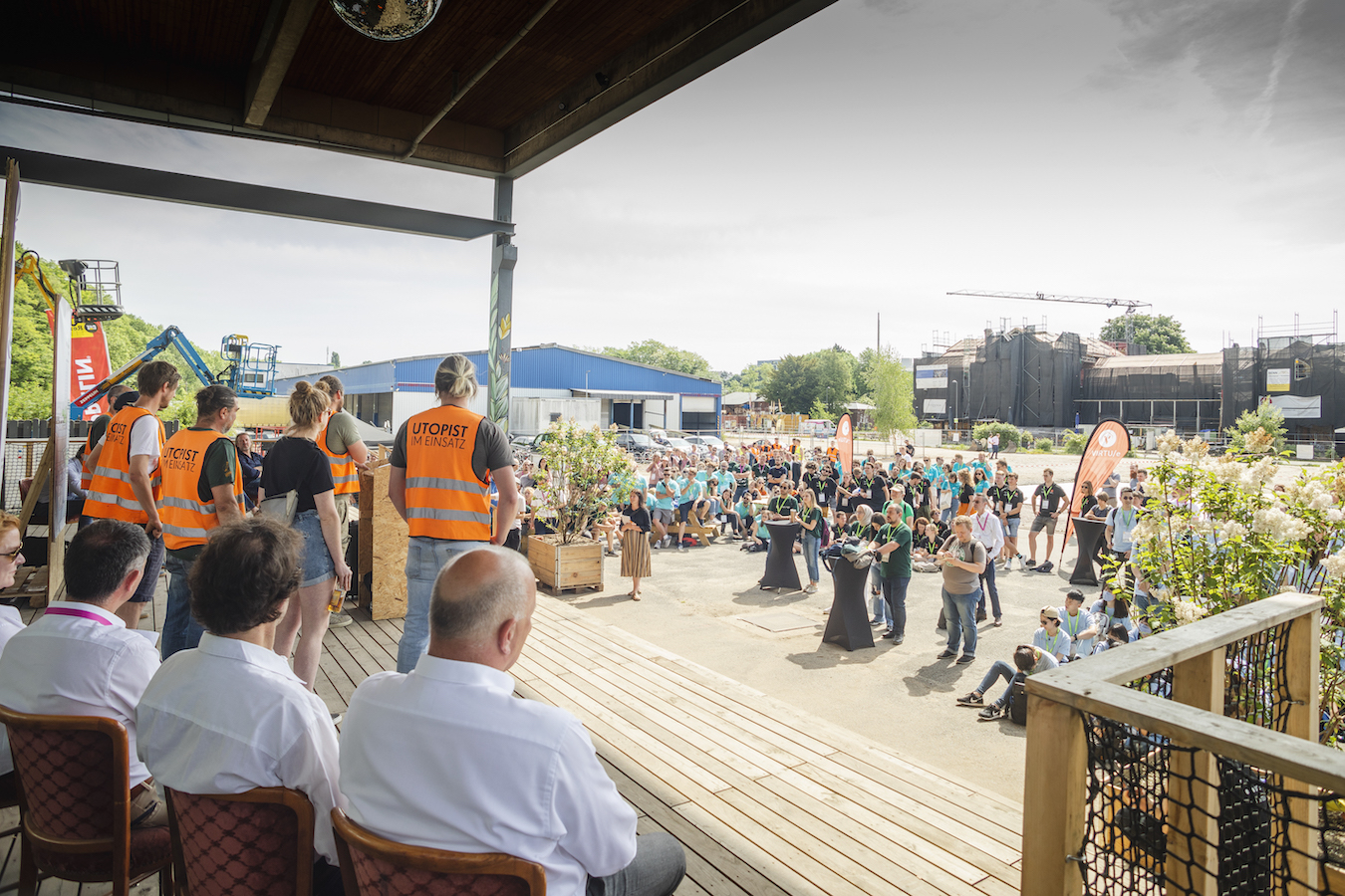 Am Donnerstag, dem 19. Mai wurde der erste Spatenstich zur Eröffnung der Bauphase des »Solar Decathlon Europe 21/22« (SDE21/22) gesetzt. Rund 300 Studierende, Interessierte, Utopist*innen und Beteiligte des SDE21/22 versammelten sich vor der Alten Glaserei, um sich gemeinsam auf den Beginn der Veranstaltung einzustimmen. In den kommenden drei Wochen werden die 18 internationalen Hochschulteams ihre Demonstratoren errichten und den »Utopiastadt Campus« entlang der Nordbahntrasse nicht nur in eine riesige Baustelle, sondern letztendlich in ein Messegelände für innovatives und energetisches Bauen verwandeln. Vom 10.06. – 26.06. findet dann der offizielle »Solar Decathlon Europe 21/22« statt, anlässlich dessen eine hohe fünfstellige Besucher*innenzahl erwartet wird.