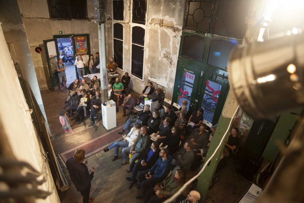 Zu Beginn begrüßte David J. Becher, Vorstandsvorstandsvorsitzender des Utopiastadt e.V., alle Anwesenden und führte in die Thematik und den Ablauf des Abends ein.