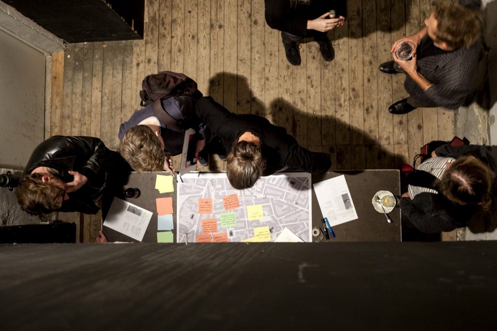 Alle Beteiligten hatten eine Stunde Zeit ihre Ideen in den Diskurs mit einzubringen und letztendlich auf einer Karte des Quartiers zu vermerken. Im Anschluss wurden diese vorgestellt.