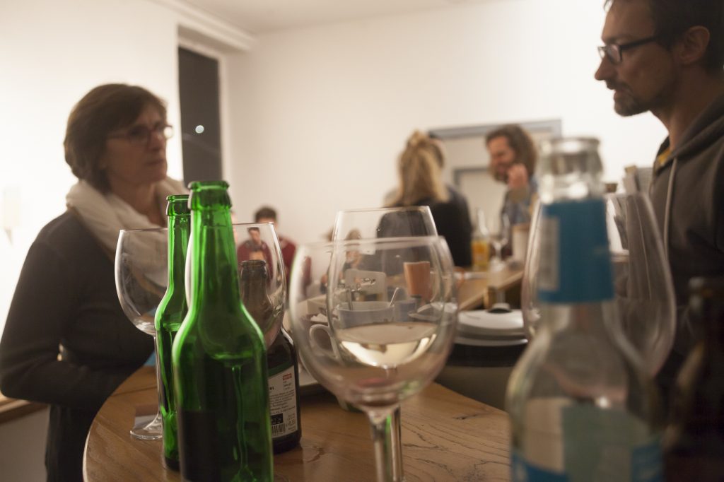 Im Anschluss der Präsentation hatten alle BesucherInnen die Möglichkeit sich die Ausstellung anzuschauen und explizite Fragen im Einzelgespräch mit den Studierenden zu klären. Für das leibliche Wohl wurde bei einem Glas Wein und Buffet aus dem Café ADA gesorgt. Schlichtweg eine sehr entspannte, aber ideengeladene Atmosphäre die vor Tatendrang nur so sprudelte. Als Besucher der Veranstaltung war es unverkennbar, dass sich die Interessierten jeglichen Alters miteinander vernetzen und sich über die erarbeiteten Ergebnisse angeregt unterhielten.