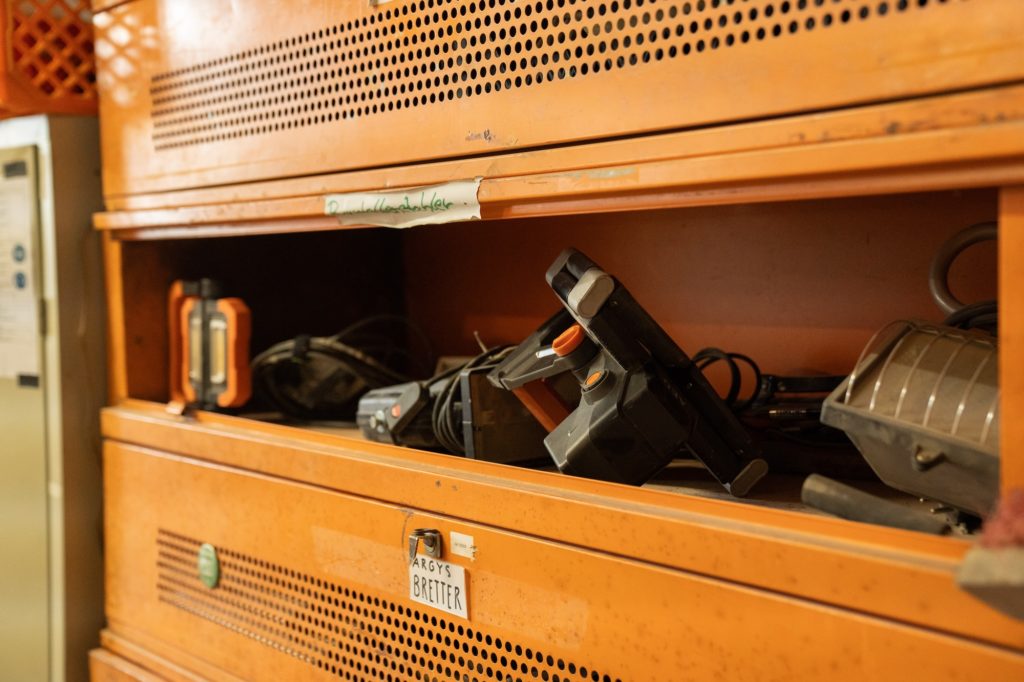 Dabei reduzieren sich die Utopist*innen allerdings nicht alleine auf „die Baustelle“, denn Utopiastadt war schon immer mehr als ein Gebäude und das utopische Tun bezieht sich schon immer auf die Herstellung anderer Zukünfte. Innerhalb von drei verschiedenen Führungen werden die Besucher*innen über die Vielfalt der ansässigen „Module“, die Sanierung im laufenden Betrieb und die Entwicklung des Utopiastadt Campus informiert. „Modul“ ist das Wort, dass Utopist*innen nutzen, um die einzelnen Bereiche und Gruppen in Utopiastadt zu benennen, die wohlgemerkt nicht trennscharf sind. Amanda übernahm an diesem Tag die Führung durch diese Module und begleitete die Besucher*innen durch eine Bandbreite der folgenden Module: den Fahrradverleih, die Werkstatt bzw. die Genese der benachbarten GPA (Gepäckabfertigung), die Nähwerkstatt, den Hackerspace /dev/tal, die Mirker Schrauba, den Garten, das Fienchen, das Fotolabor, den Förderverein, die Co-Forschung das Forum:Mirke. Wobei jedes Modul einzeln von Utopist*innen vorgestellt wurde, die in diesen auch aktiv sind und sie mitgestalten. Das Motto lautet hier: Nicht über, sondern mit Utopist*innen und deren Projekten reden. Die Führung durch die Sanierung wird von Utopist*innen, wie Tobias Grosse-Brockhoff übernommen, der selbst Erfahrungen mit dem konkreten Sanierungsvorhaben sammeln konnte und auch fachkundige Fragen beantworten kann. Die zur gleichen Zeit stattfindende Führung zur Entwicklung des Utopiastadt Campus musste ausfallen, da die Besucher*innen die Führung zur Sanierung präferierten – das spricht für sich.
