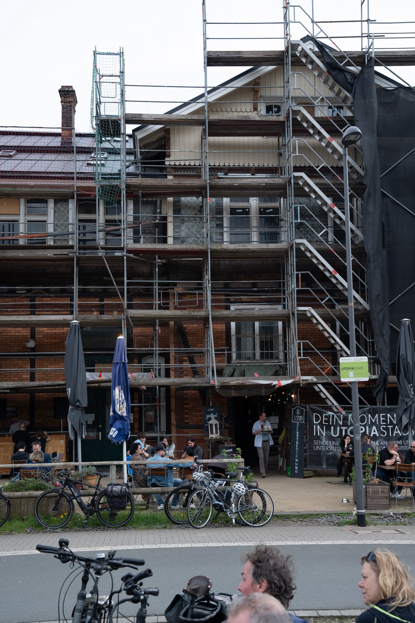 Die Situation, in der sich Utopiastadt damit bereits seit Jahren befindet, ist kein Einzelfall. Zahlreiche gemeinnützige Projekte innerhalb der Stadtmacher*innenszene sind mit dem ewigen Balanceakt zwischen eigenen Ansprüchen und fehlender ehrenamtlicher Arbeitskraft konfrontiert, der durch die Abwesenheit finanzieller Ressourcen nicht gerade entschärft wird. Das Utopiastadt als „Vorzeigeprojekt“ Wuppertals überregional so viel Aufmerksamkeit erfährt, versteht Amanda gleichzeitig als Fluch und Segen. Denn damit steigt das Interesse der Bevölkerung und zugleich auch der Aufwand für Öffentlichkeitsarbeit, die schlussendlich ehrenamtlich organisiert werden muss, enorm. Amanda betont, dass es eigentlich eine*n PR-Manager*in bräuchte, um den Wissensdurst abzudecken und neue Ehrenamtler*innen zu gewinnen. Aber dafür fehlt es zum einen an Geld und zudem an Utopist*innen, die Lust auf Öffentlichkeitsarbeit haben. Schließlich basiert Ehrenamt nun mal auf Muße und Eigeninteresse und Utopist*innen kann man zum Glück nicht einfach den Hammer aus den Händen reißen, um ihn mit einer Kamera und einem Laptop zu ersetzen. Zudem sind die Ansprüche in Utopiastadt, man hätte es sich denken können, utopisch und daher muss stetig entschieden werden, welche Aspekte gerade besonders fokussiert werden müssen. In den letzten Jahren, die zudem von einer Pandemie heimgesucht wurden und nicht nur die Kosten von Baumaterialien ins Unermessliche stiegen ließen, sondern das ehrenamtliche Engagement erschwerten und ausbremsten, fokussierten sich die Utopist*innen eher auf die Sanierung, und weniger auf deren Kommunikation nach außen. Das kann man ankreiden, aber vermutlich würden es viele unter den gegebenen Umständen nicht anders machen.