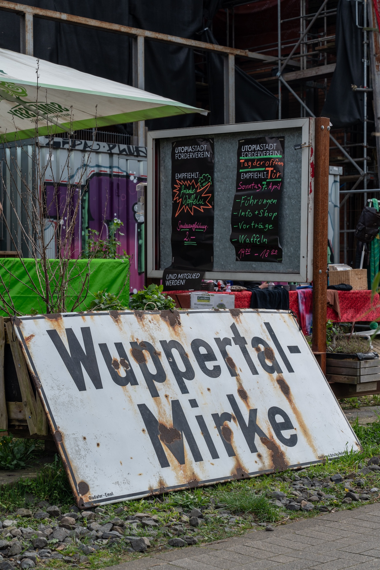 Utopiastadt, der selbst ernannte „andauernde Gesellschaftskongress mit Ambitionen und Wirkungen“, ist schon seit langer Zeit eines der zivilgesellschaftlichen Vorzeigeprojekte Wuppertals. In einem produktiven Wirrwarr treffen hier Ehrenamt, Stadtentwicklung, Kunst, Kultur, Wissenschaft, konkrete Utopien und seit ein paar Jahren auch Sanierungsarbeiten im Bestand aufeinander. Letzteres war bereits zu Beginn des Projekts unumgänglich und wurde mithilfe von öffentlichen Fördergeldern der Städtebauförderung des Landes NRW und des Bundes möglich. Den Eigenanteil akquirierten die Utopist*innen zum einen durch Fördergebende, und zum anderen durch ehrenamtliche Selbsthilfe, die seit Jahren im Rahmen der wöchentlichen Workouts durchgeführt wird. Ganz schön viele Informationen für eine Einleitung? Damit bist du nicht allein. Um ein bisschen Licht ins Dunkle zu bringen, luden die Utopist*innen am 07. April zum dritten Tag der offenen Tür ein. Wir haben uns anlässlich dessen mit Amanda Steinborn, Vorstandsvorsitzende des Förderverein Utopiastadt e.V., getroffen, um ein paar Fragen zu stellen und außerdem fotografisch ein paar Eindrücke eingefangen.