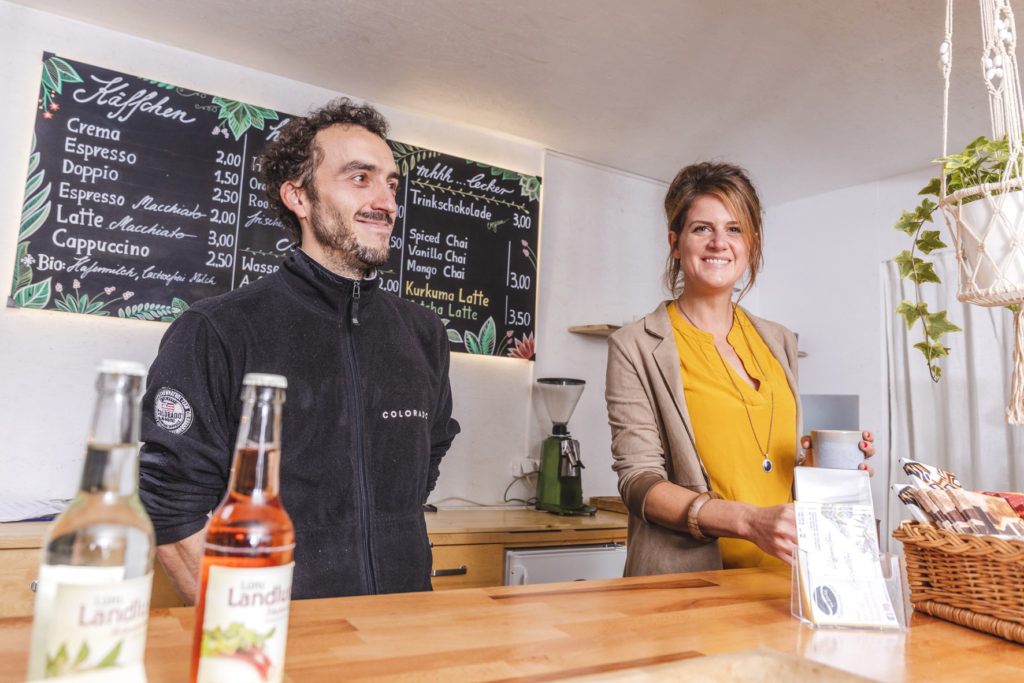 Neben den eigens produzierten Produkten aus Kaffeebohnen und deren Verpackung bietet »Talbohne« außerdem Raum für die Produkte weiterer nachhaltiger Wuppertaler Labels. Außerhalb der Öffnungszeiten des Hutmachers bereitet Yvonne die selbst produzierten Bohnen auch in Kaffeespezialitäten zu. Während der Öffnung des Hutmacher können Kund*innen die Kaffeevariationen der Talbohne direkt in der ehemaligen Bahnhofsschalterhalle genießen. Das Ganze stellt keine Konkurrenz dar, sondern vielmehr eine Kooperation, die es dem*der Endkund*in ermöglicht auch außerhalb der Öffnungszeiten des Hutmachers in den Genuss guten Kaffees auf der Nordbahntrasse zu gelangen. Sprich auf deinem Weg zur Arbeit kannst du nun ganz unkompliziert leckeren, fair-produzierten und nachhaltigen Kaffee genießen – das schmeckt!