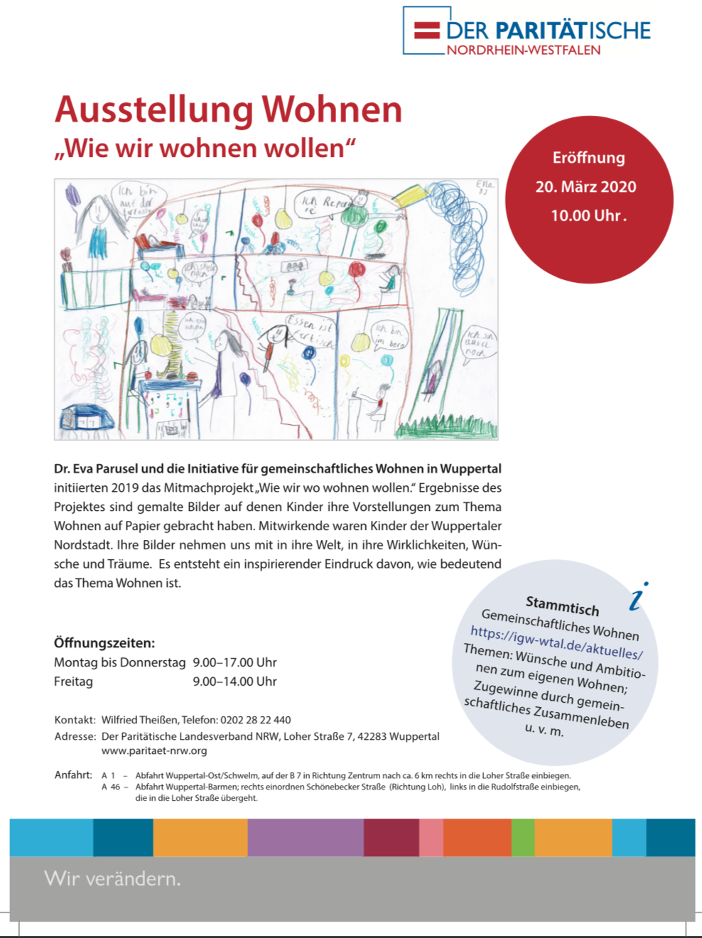 Liebe Interessierte und Freund*inn*en, sehr geehrte Damen und Herren, ich möchte auf die Ausstellungs-Eröffnung aufmerksam machen, die das Thema Wohnen aus zwei sehr spannenden Blickwinkeln thematisiert. Die Flyer im Anhang geben einen Einblick. Â Ausstellung „Wie wir wohnen wollen – Housing First“ Einladung zur Eröffnung der Ausstellung am 20.März 2020 […]