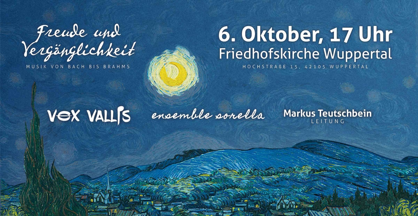 Von Bach bis Brahms: Zum zweiten Mal schließen sich zwei Wuppertaler Ensembles aus den beiden Kurrenden zu einem außergewöhnlichen Kammerchor zusammen. In der Friedhofskirche Wuppertal-Elberfeld werden Vox Vallis und Ensemble Sorella die Bach-Motette „Jesu, meine Freude“ aufführen. Neben weiteren gemeinsamen Liedern sind beide Ensembles auch solistisch zu erleben. Der Eintritt […]