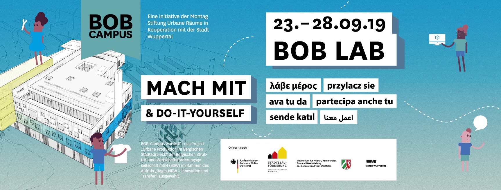 BOB Campus lädt ein: BOB LAB vom 23. – 28.09.19 Eine Werkstattwoche zum ausprobieren, produzieren, selbermachen Ausführliches Programm hier: www.bob-campus.de/BOB_LAB Workshops 10 – 13 Uhr, 14 – 17 Uhr Hockerbau, Siebdruck, 3D-Druck, Laser Cutter, Nähen, Werkzeugkoffer, Banner & Taschen, Computer, Vakant – Coole Brands für verrückte Unternehmen, Gärtnern, Workshop für […]