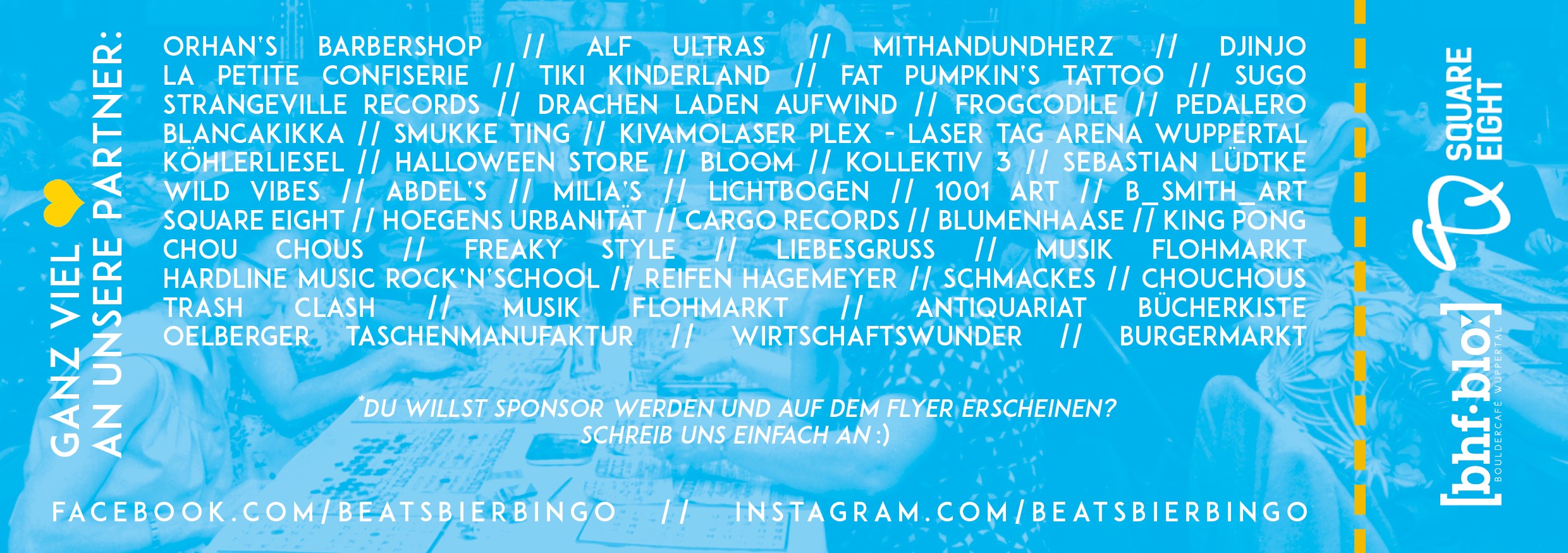 Beats Bier&Bingo und Bahnhof Blo präsentiert: ES IST WIEDER SOWEIT! Nach einigen überwältigenden Beats, Bier & Bingo-Veranstaltungen in Wuppertal, freuen wir uns mega euch endlich Mal wieder begrüßen zu dürfen. Dieses Mal in Kombination mit Slopernights im wundervollen Biergarten des Bahnhof Blo. Wir haben uns mal wieder tolle Dinge überlegt, zum […]