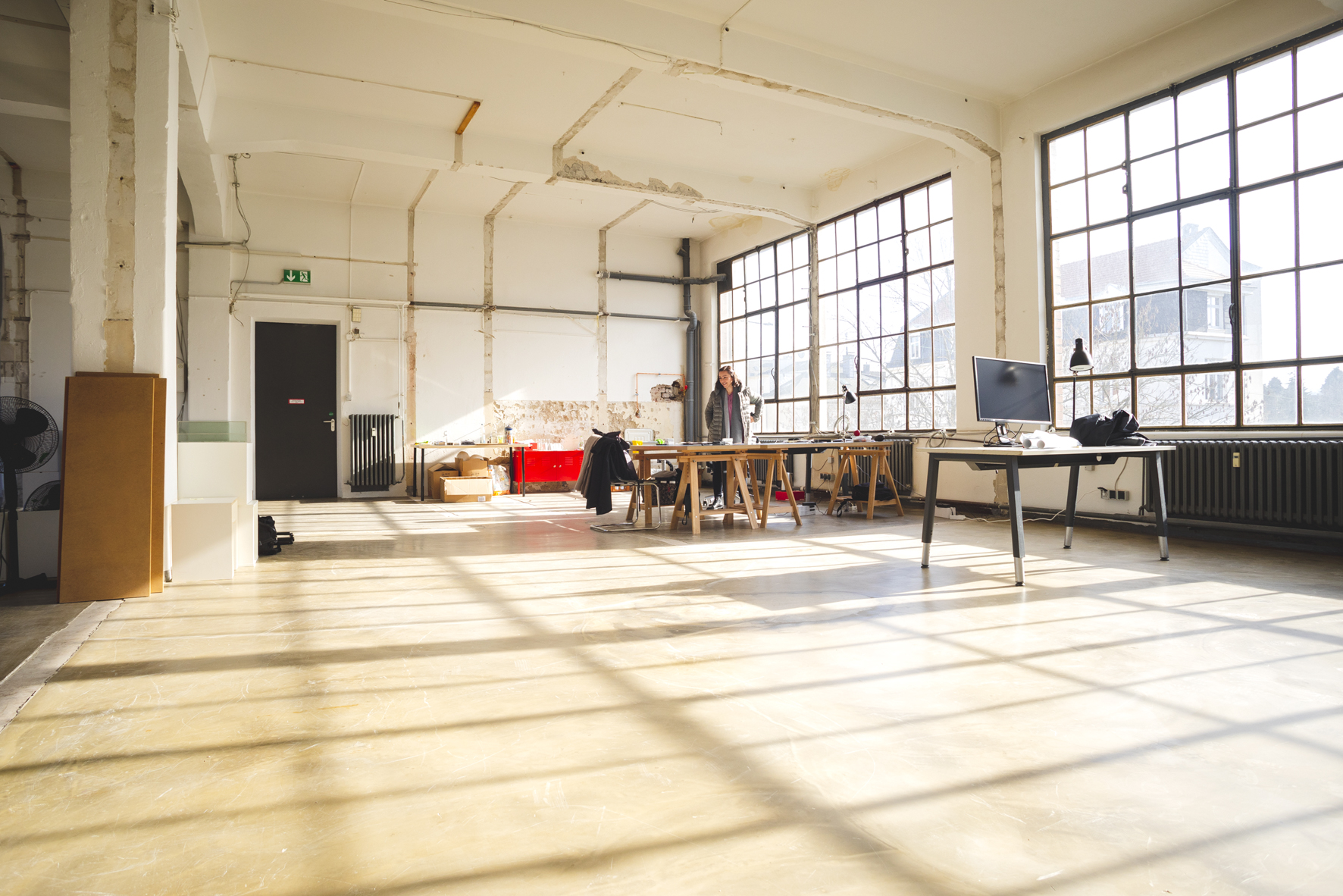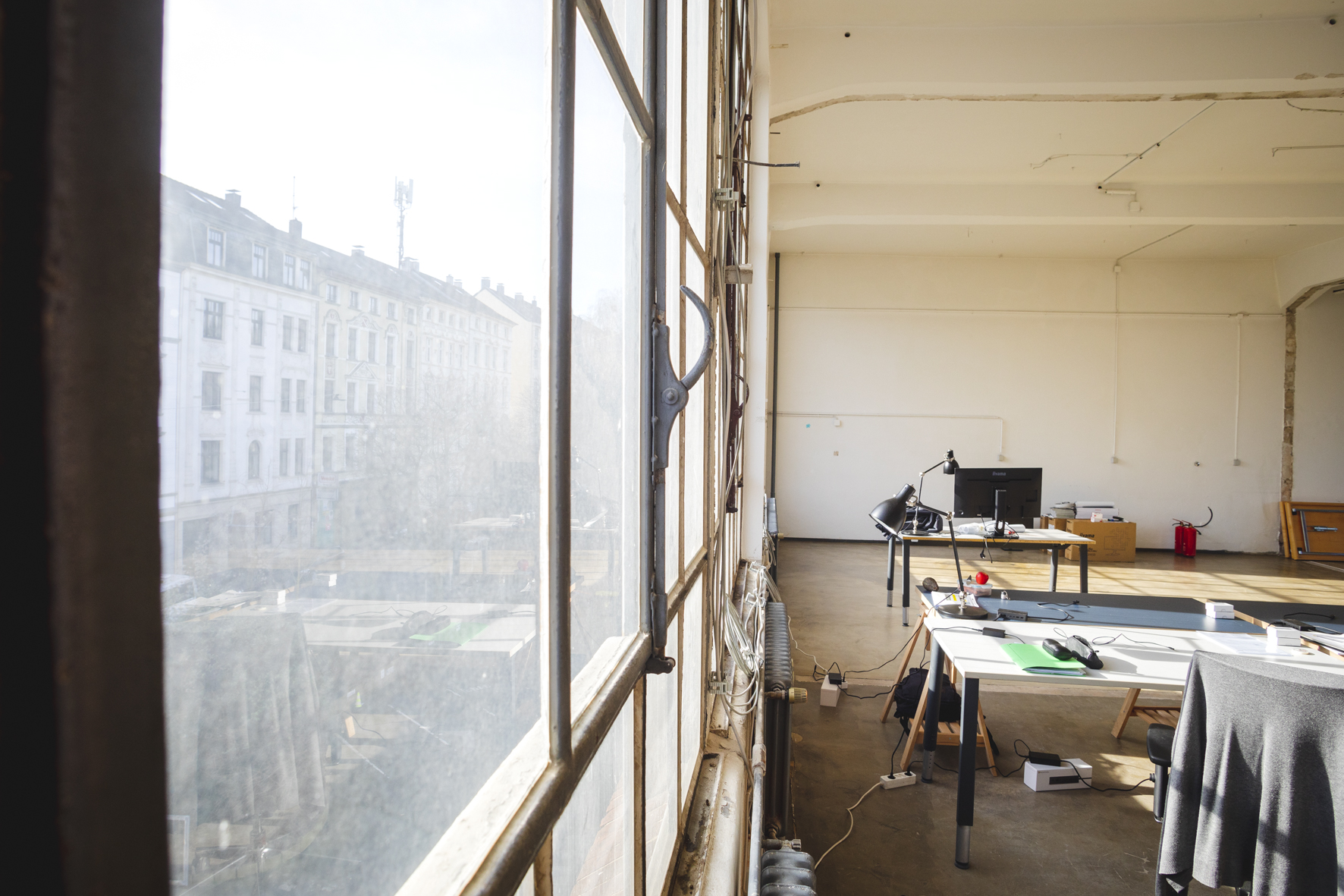 Das ehemalige Fabrikgebäude samt Waschbetonanbau ist damit vorerst vor willkürlichen Investor*innen gerettet. In den kommenden Jahren sollen in dem ehemaligen Industriekomplex gemeinwohlorientierte Möglichkeitsräume eröffnet werden, die den Quartiersbewohner*innen die Chance bieten, sich selbst zu verwirklichen und an gesellschaftlichen Prozessen teilzuhaben – quasi eine Fabrik für Gemeinwohl. Die Bestandsmieter*innen können somit auch weiterhin Teil des Hauses bleiben und gemeinsam an der Entwicklung von gemeinwohlorientierten Angeboten in ihren Räumlichkeiten mitwirken. Zum jetzigen Zeitpunkt sind ca. 50 % der Flächen an die bestehenden Mieter*innen vergeben – einige von ihnen planen sich räumlich auszuweiten. Die restlichen Mietflächen sollen zu erschwinglichen Quadratmeterpreisen vermietet werden. Welche konkreten Angebote aus den Wiesenwerken und den hausinternen Kooperationen in Zukunft hervorgehen ist bis jetzt noch nicht konkret abzusehen. Warum? Weil die Wiesenwerke ein Projekt sind, dass in einem kooperativen Prozess mit Mieter*innen, Nachbar*innen, lokalen Akteur*innen, Wissenschaft, Politik und Stadtverwaltung entwickelt werden soll. Dafür braucht es Möglichkeitsräume und Leerstellen, die in einem kollektiven Prozess gefüllt werden können. In Zukunft sollen die Wiesenwerke so zu einem gemeinsamen Ort der Arbeit, der Kultur, der Bewegung und des nachbarschaftlichen Zusammenlebens heranwachsen. Als Gemeinwohlmanagerin hofft Leonie darauf, durch verschiedene Kooperationen mit den Mieter*innen, lokalen Akteur*innen und Anwohner*innen quartiersübergreifende Fäden spinnen zu können, die ein großes Netz an Angeboten für die Bewohner*innen des Quartiers und ihre diversen Anliegen eröffnen.