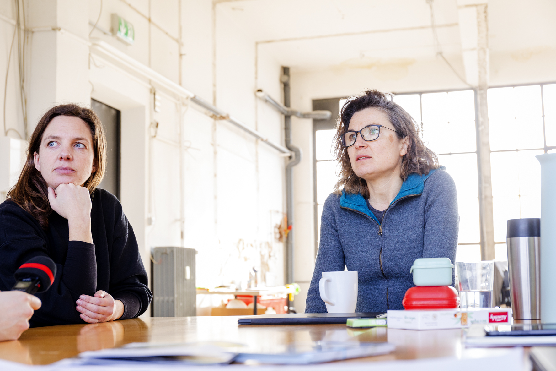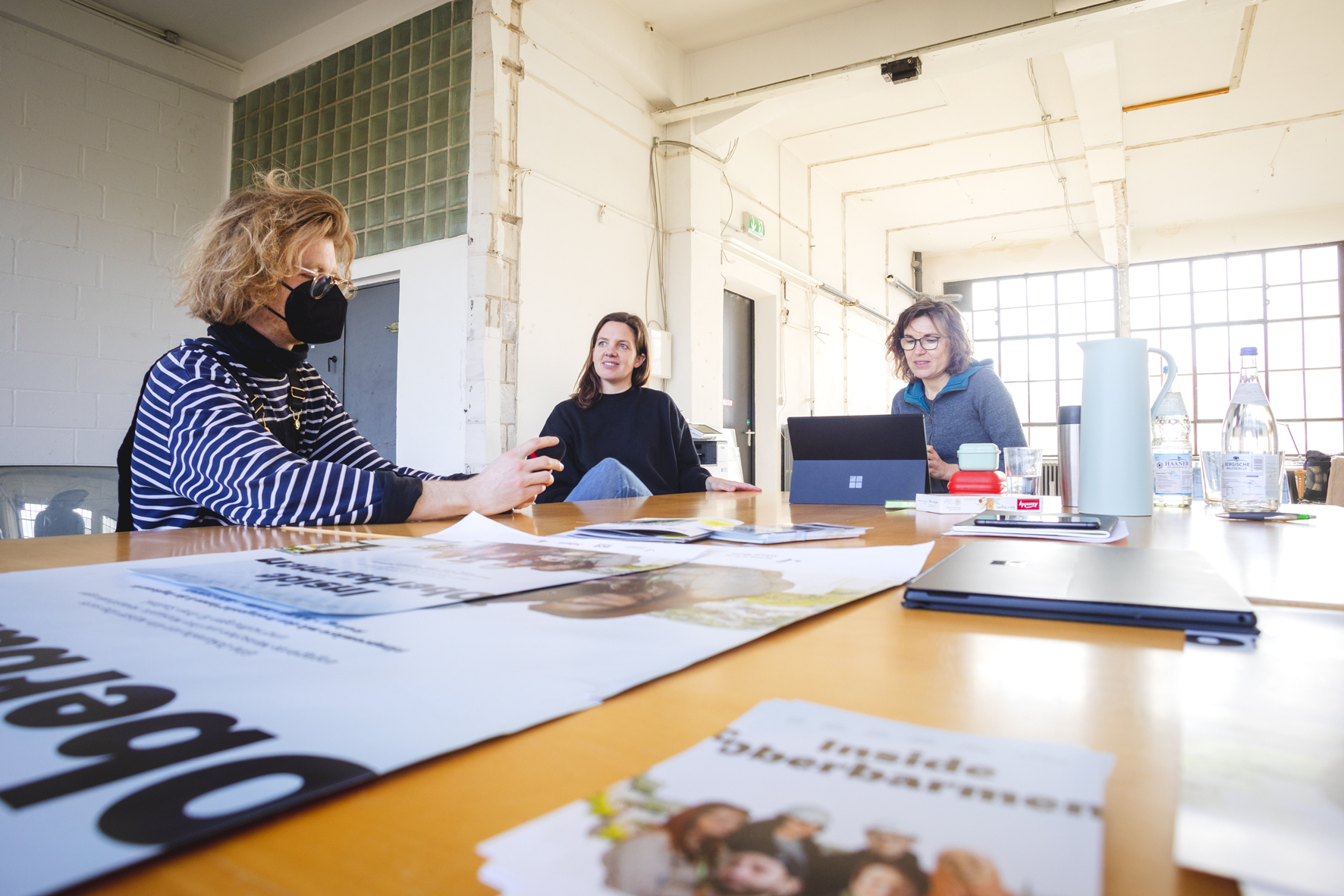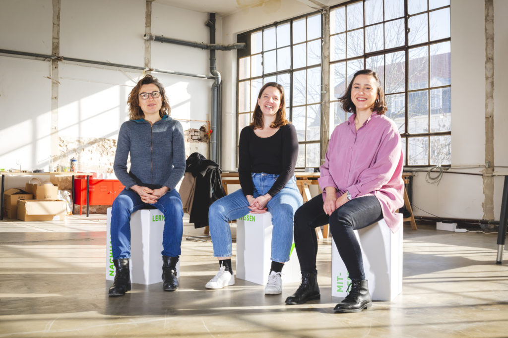 Silvia Harth arbeitet bereits seit 1 1/2 Jahren als Projektentwicklerin bei der „Montag Stiftung Urbane Räume“ und ist Geschäftsführerin der „Urbane Nachbarschaft Mirke gGmbH“. Leonie Altendorf ist Anwohnerin und Akteurin im Mirker Quartier. Sie ist Teil des Organisationsteams des Forum:Mirke und seit November 2022 Gemeinwohlmanagerin der Wiesenwerke. Helin Keles arbeitet seit Januar 2023 als Office-Managerin vor Ort und ist außerdem für die Immobilienverwaltung zuständig.