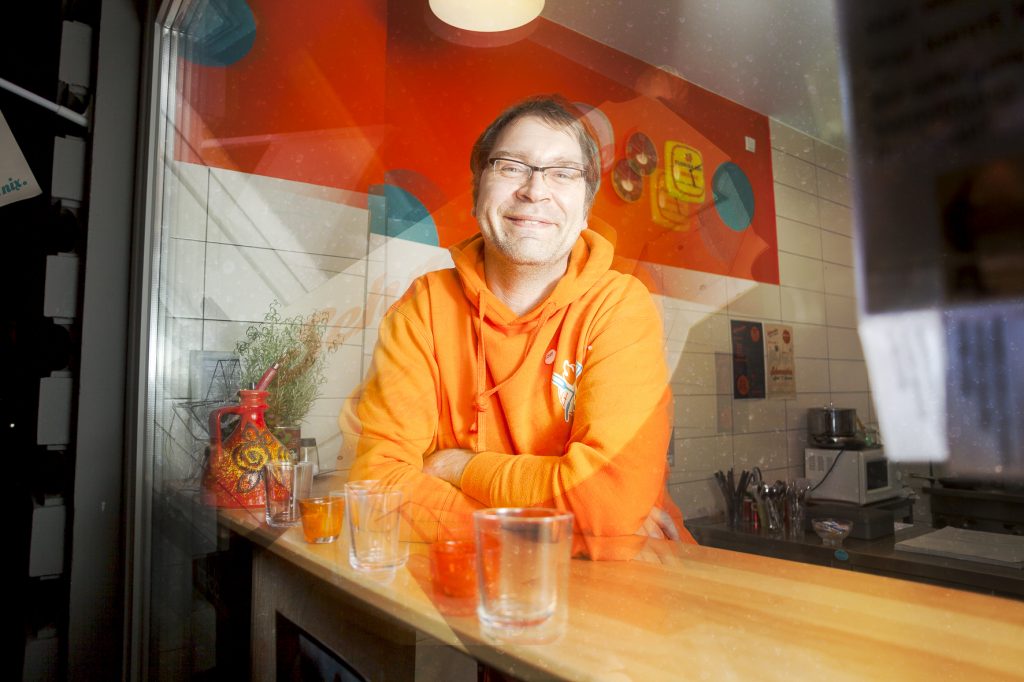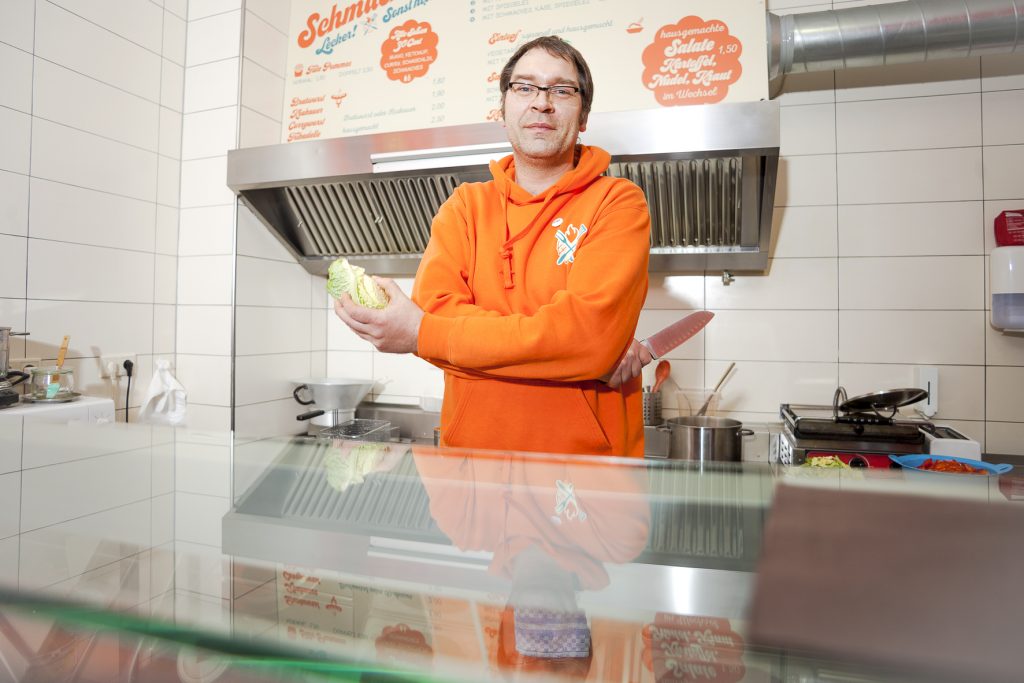 Während dieses Statement fällt betreten wir, Wolf und Mosche, den Imbiss „Schmackes“ auf der Mirker Straße. Ein groß-gewachsener Mann steht hinter der Theke und schneidet Wirsing für eine zukünftige vegane Paprika Wirsing Suppe, das ist Malte Randow. Wenn er nicht gerade Menschen mit Pommes und sonstigen Leckereien versorgt, ist Malte Integrationshelfer in einer Schule, Papa und Musikfan der sich gerne mal die eine oder andere Platte zulegt. Gemeinsam mit seinem gleichwertigen Geschäftspartner Thorsten Just, Besitzer der Kultkneipe „Wirtschaftswunder“ auf der Wiesen Straße, entstand Ende des Jahres 2017 bei einem Bierchen auf der Nordbahntrasse die Idee den Laden aufzumachen. Die Zwei machen schnell Nägel mit Köpfen und acht Wochen später, zwei Tage vor Weihnachten, eröffnet Schmackes in den Räumlichkeiten eines ehemaligen Kiosks auf der Mirker Straße. Malte entgegnete das ihm der Tag der Eröffnung noch so vorkommt als wäre er gestern gewesen und berichtet davon, dass der Laden im Quartier wunderbar aufgenommen wurde, „was will man mehr?“.