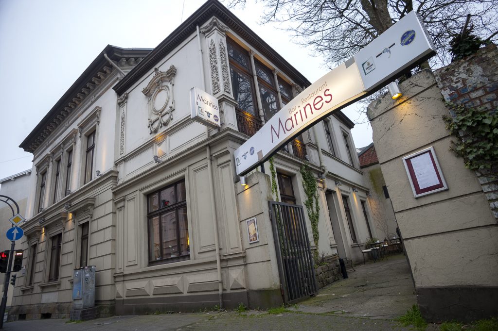 Es ist gemütlich im Marines und das hat einen Grund. Als Merry die Räumlichkeiten 2007 vom vorherigen Betreiber des „Hasrets“ übernahm, musste viel getan werden um den Laden nach Merrys Vorstellungen zu restaurieren. Die Wände wurden aufgearbeitet, die Stuckdecken freigelegt und auch das dunkle Holzparkett hat eine Menge Arbeit vertragen. Merry hat sich damals sofort in den Laden verliebt. Neben der perfekten Größe war es ihr wichtig das alte Fabrikantenhaus vor der Umwandlung in eine weitere Spielhalle auf der Gathe zu retten. Und das hätte sie nicht besser machen können. Inzwischen knarzt das Parkett bereits seit 12 Jahren unter den Füßen der begeisterten Besucher*innen des Marines. Der Raum ist von einem wunderbar appetitlichen Duft erfüllt, frische Blumen stehen an der Theke und der Gastraum füllt sich langsam. Die urigen Holzvertäfelungen in Kombination mit dem dunklen Paket und den Stuckdecken versprühen einen Charme der selten zu finden ist. Es ist gemütlich, ein wenig imposant und gleichzeitig bodenständig! Im Sommer gibt es außerdem die Möglichkeit im märchenhaften Hinterhof zu speisen. Dort ist vom Verkehrschaos der Gathe nichts zu hören. Ranken klettern an den verputzen Backsteinwänden empor und ein kleiner Baum wächst in der Mitte des Außenbereichs. Besonders in sommerlichen Abendstunden ist es hier sehr atmosphärisch.Â